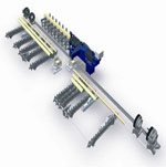 加工件放在可移动心轴上的四个滑动自动定心钳夹之上。由于这种设计,钳夹无需进行脚爪/钳夹更换。固定心轴包括一个配有四个自动定心惰辊的坚固结构,无需更换工件。FL 250 3D 装载单元包含一个抓取套件,从捆扎收集加工件,开放断面使用链条加载系统加载。三个独立机械手操纵捆扎里的管材由心轴加载,断面部件由链条加载系统加载。 |